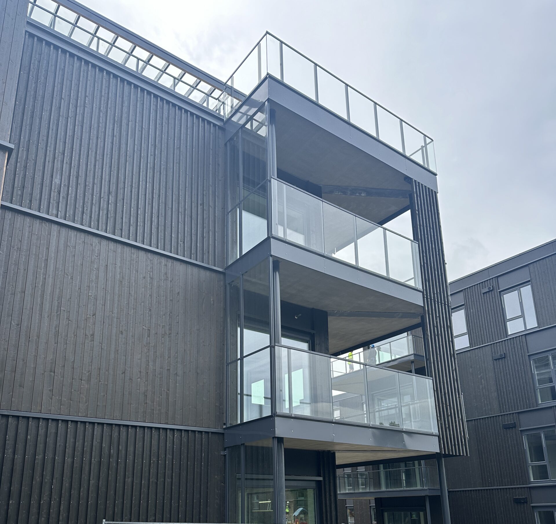 We successfully produced and installed G-line Bergen glass railings for a Norway apartment house, delivering a sleek design that meets safety standards and enhances the building’s aesthetic. Additionally, we produced and installed interior stair railings with handrails.