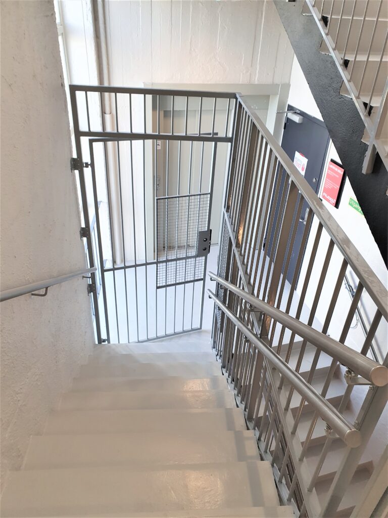 We successfully delivered and installed hot-dip galvanized steel stair railings and gates to this Norway apartment block project.